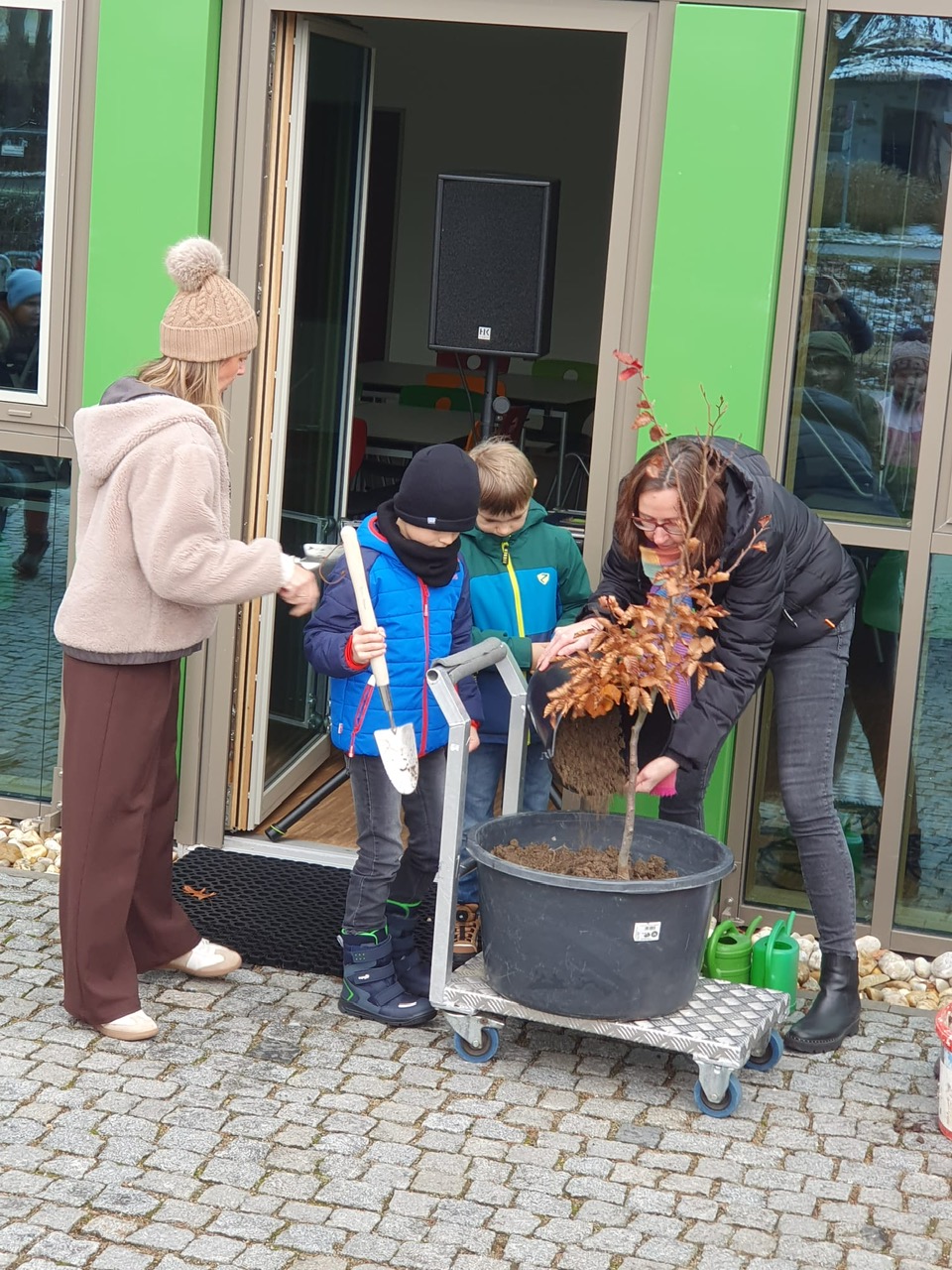 Das größte Problem bei der vorgesehenen Pflanzung bestand im überraschenden Wintereinbruch mit nächtlichem Schneefall. So musste das Unternehmen kurzfristig in den Pausenhof verlegt werden. Rektorin Sabrina Wanninger erläuterte zu Beginn die Hintergründe dieser schulischen Veranstaltung. Die Idee ist nicht mehr ganz neu. Schon seit einigen Jahren wurden immer wieder Challenges für einen guten Zweck ins Leben gerufen. Die Aktion wurde eigentlich von Feuerwehren initiiert, um gemeinsam etwas Gutes für den Klimaschutz und die Umwelt zu tun. Ihren Ursprung nahm diese Bewegung im Jahr 2022 in Österreich.
