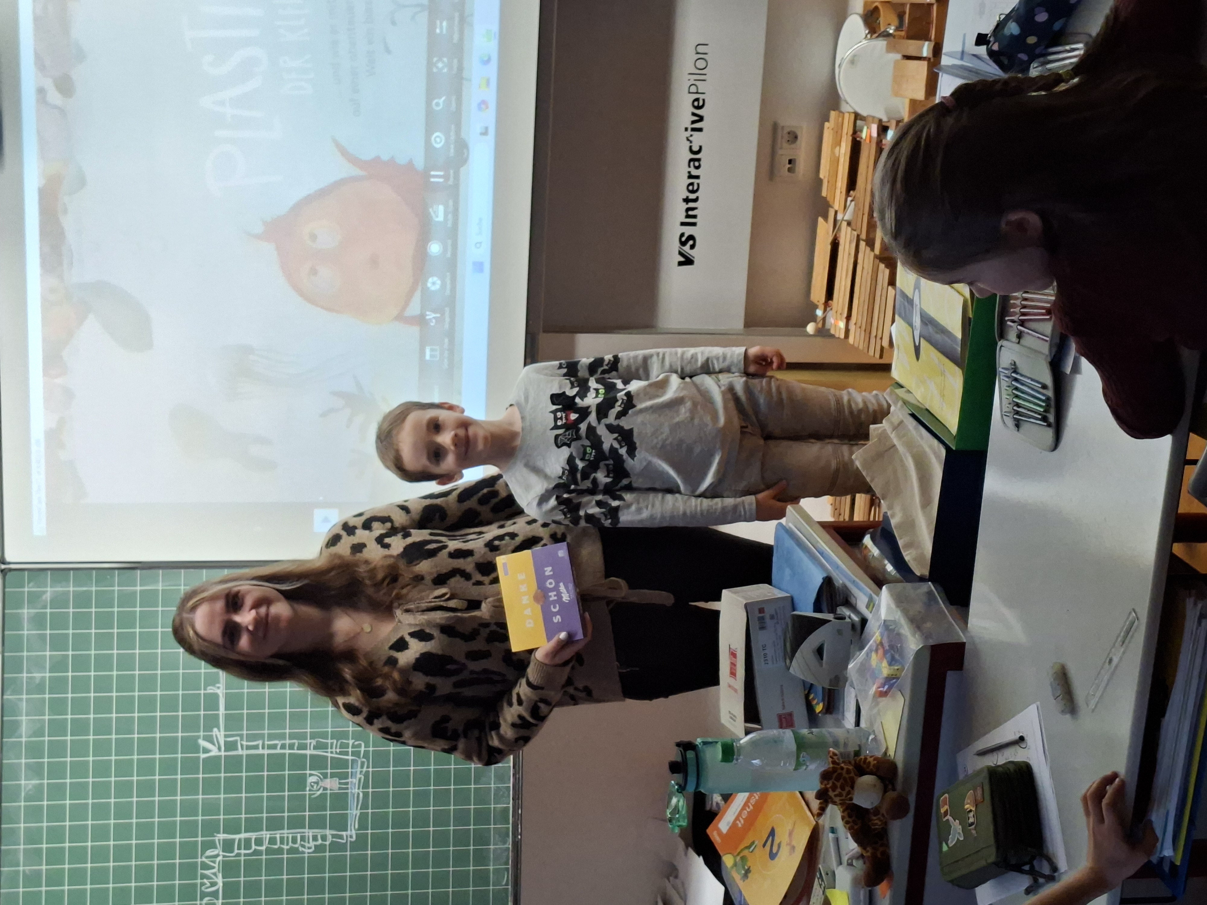 Die Klasse 2b bekam im Rahmen des Vorlesetages Besuch von einer Erzieherin aus dem Kindergarten Zandt. Sie las aus dem Kinderbuch „Plastian der kleine Fisch“ vor. Darin begeben sich zwei Kinder auf eine abenteuerliche Reise an einen geheimnisvollen Ort, von dem ihnen ihre Uroma erzählt hat. Sie bauen sich ein Boot und machen sich auf den Weg über das Meer. Doch ihr selbstgebauter Motor spuckt viele Plastikfuzerln aus. Plastian, der kleine Fisch, entdeckt die bunte Plastikspur und schluckt eine ganze Menge von diesen Stückchen. Es dauert nicht sehr lange, da bekommt der kleine Fisch starkes Bauchweh. Gott sei Dank haben die Kinder einen rettenden Einfall.