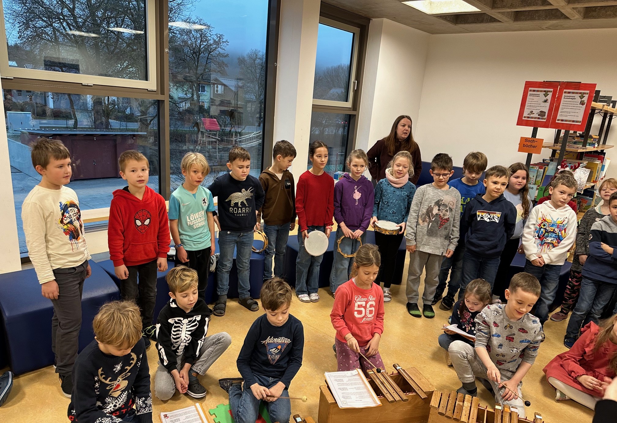 Zuerst sangen alle gemeinsam die 3.Strophen des Liedes „Wir sagen euch an den lieben Advent“. Anschließend zählten die Zweitklässler verkündeten die Zweitklässler in ihrem Lied „Weihnachtszeit“, dass bald wieder eine besondere Zeit bevorsteht. Da diese Zeit aber auch sehr dunkel ist, erhellten die Drittklässler mit ihrem Sprechstück „Ein Licht für uns alle“ die Aula. Anschließend wünschten die Viertklässler allen mit der deutschen Version von „Merry Christmas Everyone“ alle frohe Weihnachten und die Schülerinnen und Schüler der Klasse 4a erzählten mit ihrem Gedicht von der Nacht vor dem Heiligen Abend. Danach sangen alle Schülerinnen und Schüler unter der Leitung von Konrektorin Stefanie Hauser „Feliz Navidad“. Zum Schluss wünschte Schulleiterin Sabrina Wanninger allen Schülerinnen und Schüler, sowie den Lehrkräften eine tolle letzte Schulwoche, ein frohes Weihnachtsfest und einen guten Rutsch ins Jahr 2026.